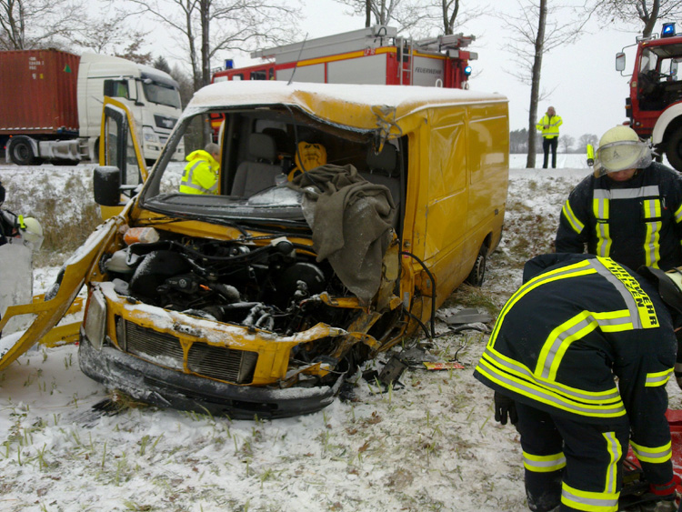 Doch das neue System ist offenbar mit Mängeln behaftet – gestern hätte dieser Umstand einem Menschen auf der Bundesstraße 4 das Leben kosten können. Denn er musste über 30 Minuten schwer verletzt und einklemmt in seinem Fahrzeugwrack bei minus sieben Grad ausharren, weil Rettungskräfte, Feuerwehr und Notarzt von der Leitstelle Luna auf eine Irrfahrt geschickt wurden. Der 26-jährige Fahrer des Klein-Lkw war gestern gegen 10.45 Uhr bei einem Überholmanöver bei Holdenstedt auf der schneeglatten Bundesstraße 4 von der Straße abgekommen und gegen einen Baum geprallt. Ein Autofahrer wählte den Notruf 110. Und damit begann für die Rettungsdienste eine 30-minütige Odyssee.