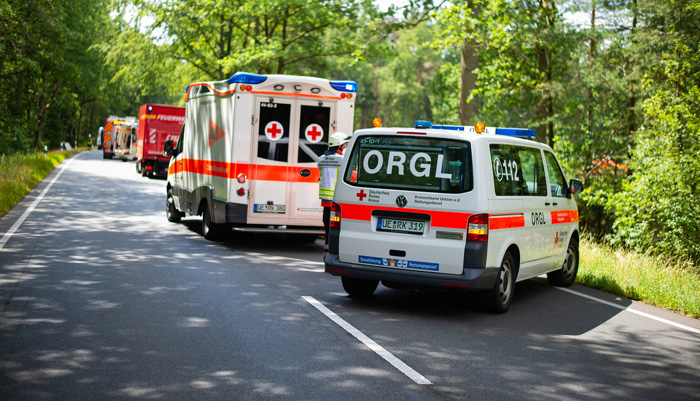 Daraufhin wurde gegen 11:40 Uhr ein Großaufgebot an Rettungskräften der Feuerwehren aus Uelzen, Holdenstedt und Suderburg, des DRK-Rettungsdienstes aus den Kreisen Uelzen und Gifhorn, zwei Rettungshubschrauber aus Uelzen und Hannover, der DRK-Bereitschaft Kreis Uelzen, ein Leitender Notarzt, ein Organisatorischer Leiter Rettungsdienst sowie der Polizei zur Unfallstelle entsandt.