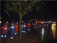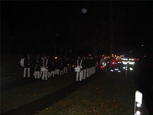 Treffpunkt war auf dem Schulhof der Grundschule Holdenstedt. Von dort ging es gegen 18.30 Uhr von einem Spielmanzug angeführt durch den Ort. Wir sicherten dabei den Laternenzug an den Straßen ab.