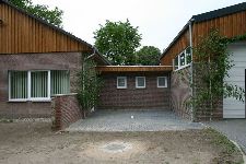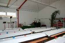 Es gibt einen WC-Bereich für Damen und Herren, eine Dusche, und ein kleines Büro im Zwischentrakt.