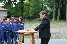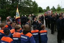 Ortsbrandmeister Michael Schulz konnte rd. 100 geladene Gäste begrüßen, unter ihnen der Bürgermeister Otto Lukat, die Ortsbürgermeisterin Brigitte Schufmann, den stellv. Kreisbrand-meister, eine Abordnung des Ortsrates, Vertretern der ehem. Gebäudewirtschaft, dem Stadtkommando, Vertretern der örtlichen Vereine und vielen anderen mehr.