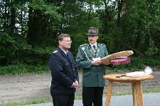 Dieses Werk wurde also eingeweiht und offiziell durch die Gebäudewirtschaft über den Bürgermeister Otto Lukat an den Ortsbrandmeister Michael Schulz übergeben.