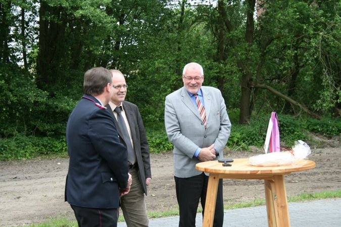 Dieses Werk wurde also eingeweiht und offiziell durch die Gebäudewirtschaft über den Bürgermeister Otto Lukat an den Ortsbrandmeister Michael Schulz übergeben.