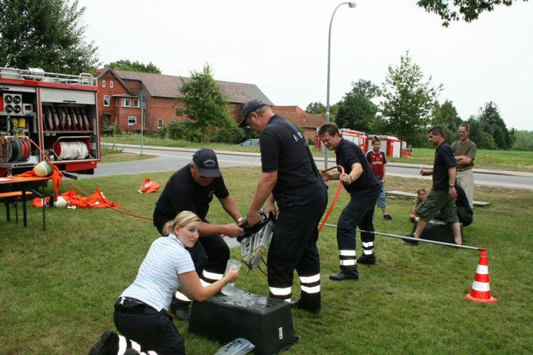 Bei tropischen Temperaturen führte die Freiwillige Feuerwehr Holdenstedt am 08.08.09 einen Tag der offenen Tür in ihrem neuen Gerätehaus durch. Im Mai weihte die Holdenstedter Wehr ihren Um- und Ausbau offiziell ein, nun konnten sich alle Holdenstedter und Interessierte einen Überblick über die umfangreichen Arbeiten verschaffen. Neben den möglichen Einblicken sorgten die Kameradinnen und Kameraden der Holdenstedter Wehr, der Förderverein und die Jugendfeuerwehr natürlich auch umfassend für das leibliche Wohl.