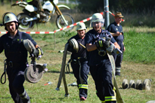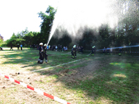 Dies sind unsere Wettkämpfe wie sie bereits vor „Urzeiten” ausgetragen wurden. Diese Tradition darf nicht verloren gehen! Mit einer Pumpe und drei Strahlrohren werden so schnell wie möglich drei Kanister mit Wasser von ihren Podesten geschossen. Welche Wehr schafft dies am schnellsten?
