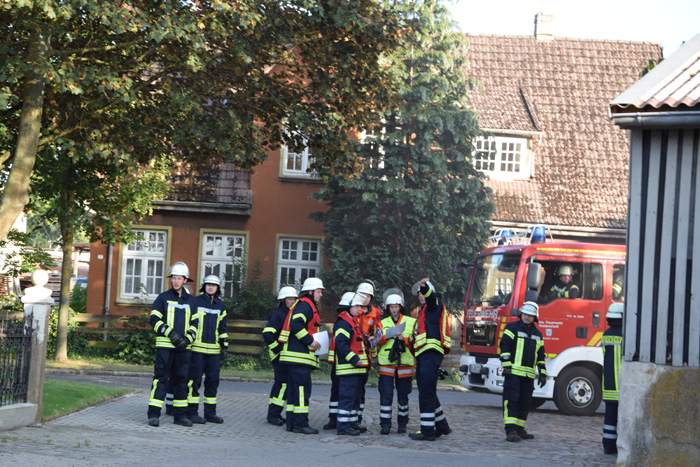 Einsatzübung bei der Firma HSH in der Schloßstraße. Mit dabei waren die Freiwillige Feuerwehr Klein Süstedt, die Freiwillige Feuerwehr Hansen und das DRK. Es wurden drei Personen in einer verrauchten Halle vermisst. Diese waren schwer verletzt und mussten vom DRK versorgt werden. Auch ein Atemschutznotfall wurde geübt. Die Wasserversorgung wurde aus dem öffentlichen Netz und der Hardau aufgebaut.