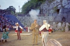Gezeigt wurde das Stück „Winnetou und das Geheimnis der Felsenburg“ und wieder konnte der Kampf zwischen Rothäuten, Gringos und Bleichgesichtern die Mitgereisten voll auf begeistern, flog doch auch wieder genügend Blei durch die Luft.