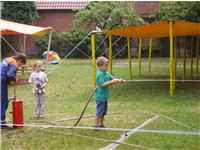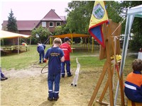 Alle 2 Jahre organisieren die Eltern und Lehrer der Grundschule in Holdenstedt ein großes Schulfest mit vielen Spielen, Tombola, Kaffee, Kuchen und vielem mehr. Auch die Jugendfeuerwehr ist hier bereits seit Jahren mit vertreten und baute auch diesmal wieder zwei Wasserspiele auf. Besondere Höhepunkt in diesem Jahr war jedoch ein im Pavillon der Jugendfeuerwehr vorgeführter Film über die Feuerwehrübung in der Schule Holdenstedt am 09. Juni 2006. Hier konnten sich alle Schülerinnen, Schüler, Eltern und Lehrer noch einmal ganz genau anschauen wie im Ernstfall ein Feuerwehreinsatz in der Schule aussehen könnte.
