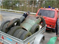Leider mussten wir diesmal feststellen, dass wieder mehr Müll als in den letzten Jahren einfach in der Natur entsorgt wurde. So fanden sich im Wald vom entsorgte Computer über Altreifen, Dosen und Flaschen bis hin zu einer kompletten Auspuffanlage eine große Menge an Unrat. Mit vereinten Kräften wurde alles am Gerätehaus angesammelt und anschließend vom Landkreis fachgerecht entsorgt. Für alle Teilnehmer gab es zum Abschluss noch eine gemeinsame Stärkung und die Erkenntnis, dass auch im nächsten Jahr wieder ein gemeinsamer Müllsammeltag organisiert werden soll.