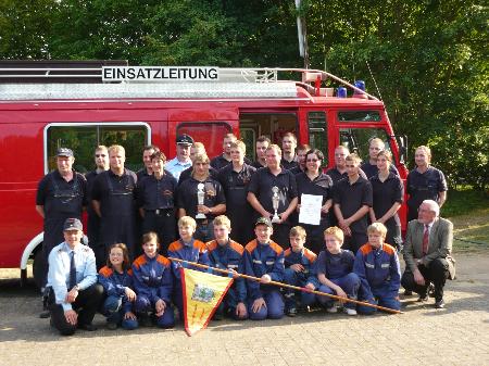 Auch in diesem Jahr konnten wir am 21. Juni mit gleich 2 Gruppen bei den Stadtleistungswettbewerben in Westerweyhe starten. Die Vorbereitung auf die Leistungswettbewerbe war in diesem Jahr doch reichlich schwierig, da durch den Anbau an unser Gerätehaus der Übungsplatz entfallen war. Auch ein regelmäßiges Üben war wegen der Bauarbeiten nicht immer möglich. Umso erfreulicher starteten wir in den Löschangriff, den so genannten A-Teil. Hier waren die Übungen beider Gruppen nahezu fehlerfrei. Entscheidend war somit das Ergebnis im B-Teil (Staffellauf). Die zweite Gruppe blieb zwar auch hier fast fehlerfrei doch die erste Gruppe konnte zudem den Staffellauf unter der Vorgabezeit beenden. Am Ende belegte die zweite Gruppe den 3. Platz von 6 Gruppen und die erste Gruppe errang nach einem Jahr Pause den Titel des Stadtsiegers zurück!