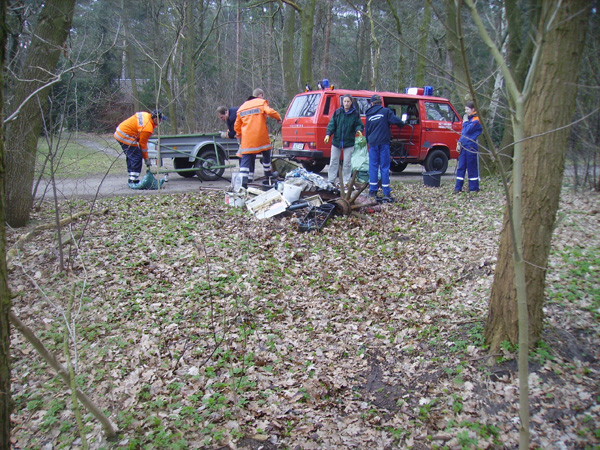 Auch 2009 organisierten wir wieder ein gemeinsames Müllsammeln rund um Holdenstedt und Borne mit Pro Holdenstedt e.V.. Es war auch in diesem Jahr leider wieder nötig. Von Treckerreifen über Computer, Fernseher bis hin zu Gartenabfällen war wieder viel dabei. Die Krönung stellte jedoch eine illegale Mülldeponie im Gerdautal dar, in der gleich massenweise Bekleidung, Spielzeug und Schuhe entsorgt wurden. Nach einigen harten Stunden beim Müllsammeln hatten die Mitglieder von Pro Holdenstedt im Gerätehaus noch eine ordentliche Stärkung für alle vorbereit.