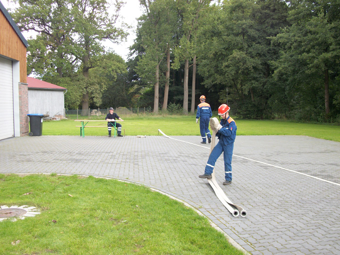 Wie geht das mit dem Ausrollen eines Feuerwehrschlauches richtig? Was ist die Aufgabe eines Verteilers? Wie viel Wasser geht durch ein Strahlroh in der Minute und wie leiste ich richtig Erste Hilfe? Aller dieser Fragen und noch einigen mehr stellten sich am 19. September 2010 fünf Jugendfeuerwehrmitglieder aus Holdenstedt, denn es galt die Jugendflamme Stufe 1 abzulegen. Zum Beweis, dass ein Jugendfeuerwehrmitglied alle wichtigen Grundlagen in der Jugendfeuerwehr kennt, gibt es die Jugendflamme Stufe 1. Nach vielen Fragen, gebundenen Knoten und gerollten Schläuchen erhielten am Ende alle Teilnehmer die Jugendflamme Stufe 1. Aus Holdenstedt waren Patrick Lubczyk, Niklas Liedtke, Nils Warnke, Aron Ripke und Anna Göbel erfolgreich dabei.