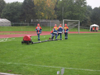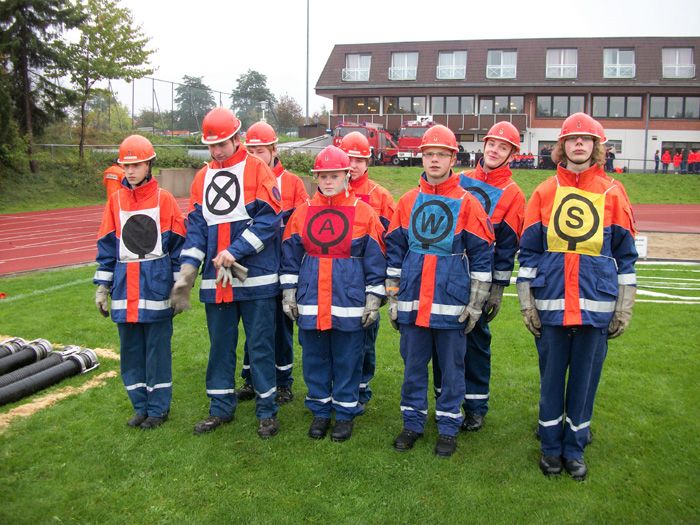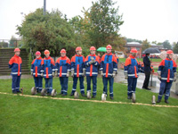 Die Leistungsspange ist das höchste Leistungsabzeichen der Deutschen Jugendfeuerwehr und wird nur für die gute Leistung einer ganzen Gruppe verliehen. Um in diesem Jahr bei der Abnahme der Leistungsspange am 26. September 2010 in Adendorf dabei zu sein, formierte sich eine gemeinsame Gruppe aus den Jugendfeuerwehren der Stadt Uelzen. Verstärkt wurden die Jugendlichen aus den Jugendfeuerwehren Oldenstadt, Kirch-/Westerweyhe, Holdenstedt und zusätzlich aus der Jugendfeuerwehr Reinstorf. Bereits seit Ende August wurde regelmäßig und intensiv für die einzelnen Aufgaben der Leistungsspange geübt. Was dann bei der Leistungsspangenabnahme passierte, hatte so auch noch keiner erlebt! Es regnete meistens stark und vor allem, den gesamten Tag ohne eine einzige Pause! Auch wenn der Veranstalter in Adendorf alles Mögliche für einen reibungslosen Ablauf getan hatte, so wurde diese Leistungsspangenabnahme doch zu einer einzigen Regenschlacht. Am Ende des Tages war das genaue Ergebnis fast schon egal, denn es galt: Hauptsache Bestanden! Und das hatten wir. Aus der JF Holdenstedt war Julian Schütte erfolgreich dabei, zudem starteten Marvin Hinrichs und Steffen Riggert als Füller und mit Arne Schmieta war auch noch ein Reservemann für alle Fälle dabei.