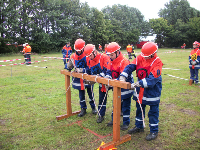 Los ging es in diesem Jahr mit dem Kreiswettbewerb am 19. Juni 2011 in Himbergen, wo wir mit einer Gruppe starteten. Weiterhin stellten wir noch eine gemeinsame Gruppe mit der Jugendfeuerwehr Veerßen. Wir absolvierten zunächst den Hindernislauf (B-Teil) und konnten uns dabei noch über trockenes Wetter und einer fast fehlerfreien Übung mit einer guten Zeit freuen. Während wir auf den Start für den Löschangriff warteten, fing es dann an zu regnen und hörte auch nicht mehr auf. Mit dem Regen hatten wir dann einige Probleme, insbesondere am Wassergraben und Pech gesellte sich auch noch dazu. Tapfer wurde die Übung absolviert und am Ende erreichten wir einen respektablen 12. Platz von 27 gestarteten Gruppen.