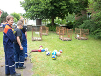 Unsere Nachbarjugendfeuerwehr Oldenstadt hatte erneut zu einem Orientierungsmarsch eingeladen und wir waren am 03. Juni natürlich mit einer Gruppe dabei. Es galt wieder zehn Stationen in der Umgebung von Oldenstadt zu finden und deren Feuerwehraufgaben oder Spiele zu bewältigen. Der Start verlief dabei erst einmal nicht sehr gut und wir erreichten an den ersten drei Stationen kaum Punkte. Doch mit den folgenden Stationen steigerten wir uns immer mehr und besonders bei den Feuerwehraufgaben konnten wir wahre Höchstleistungen zeigen. So schafften wir für die Siegerehrung dann doch noch einen ordentlichen Platz im vorderen Drittel. Im nächsten Jahr versuchen wir dann gleich von Beginn volle Punkte zu erzielen...