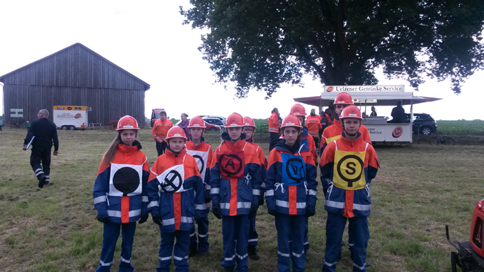 Los ging es am 21. Juni 2014 mit dem Stadtleistungswettbewerb in Masendorf. Alle sechs Jugendfeuerwehren der Stadt Uelzen starteten an diesem Tag. Bei etwas wechselhaftem Wetter konnten wir trocken auf die Bahn zum Laufen gehen, ehe es zum Löschangriff ging. Eigentlich verlief alles gut und auch die Zeiten stimmten, wenn nur nicht der Fehlerteufel wäre! Dieser schlug gleich zweimal mit erheblichen „Miesen“ zu. Am Ende belegten wir den 4. Platz von den 6 gestarteten Gruppen.